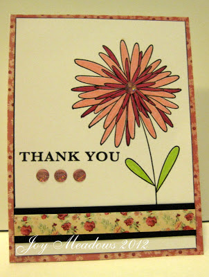 Just used different patterned papers and colors for this one. I love the pompom flower and the sticko gems have quickly become a favorite. Even though they sparkle,they are fairly flat. Which makes it nice when mailing a card.